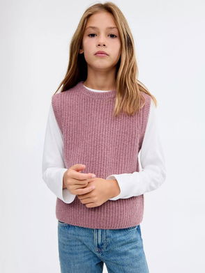 Kids' Enea Ribbed Knitted Vest, Medium Brown