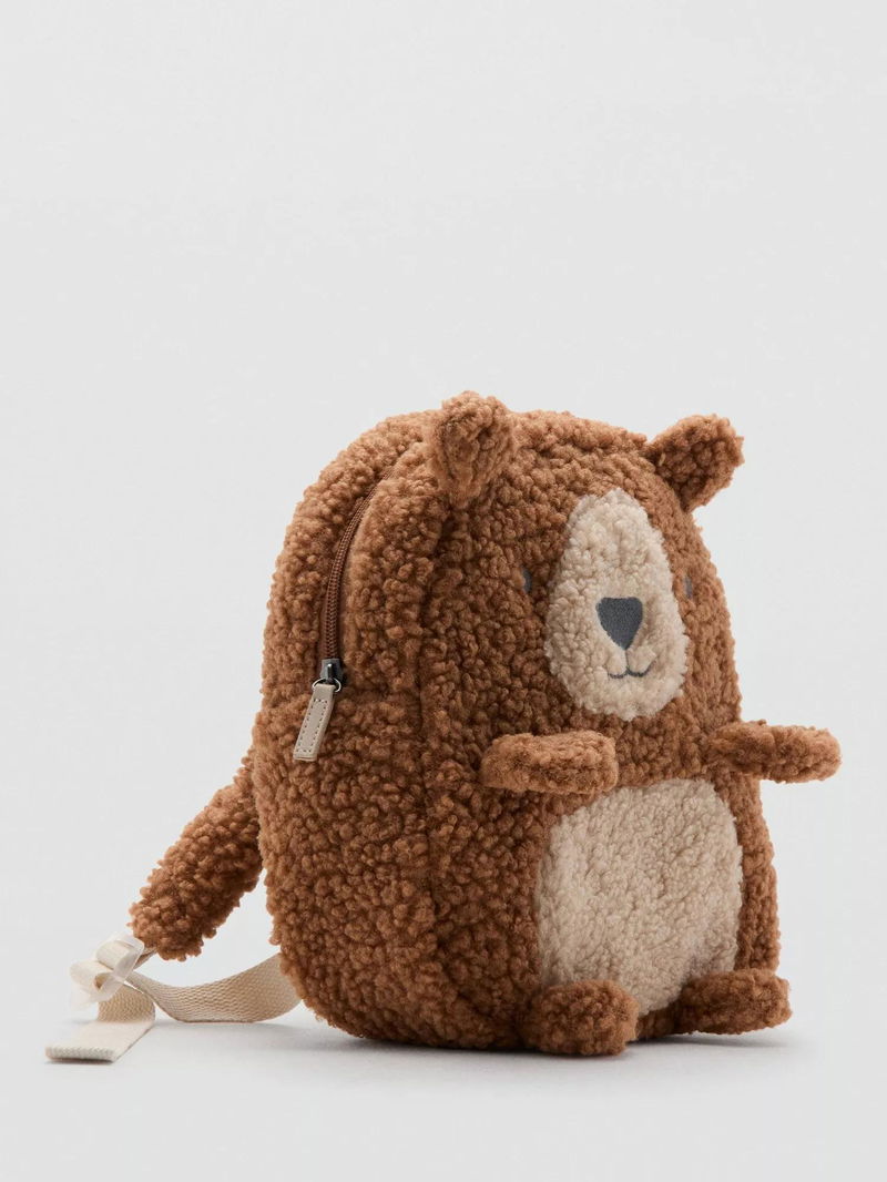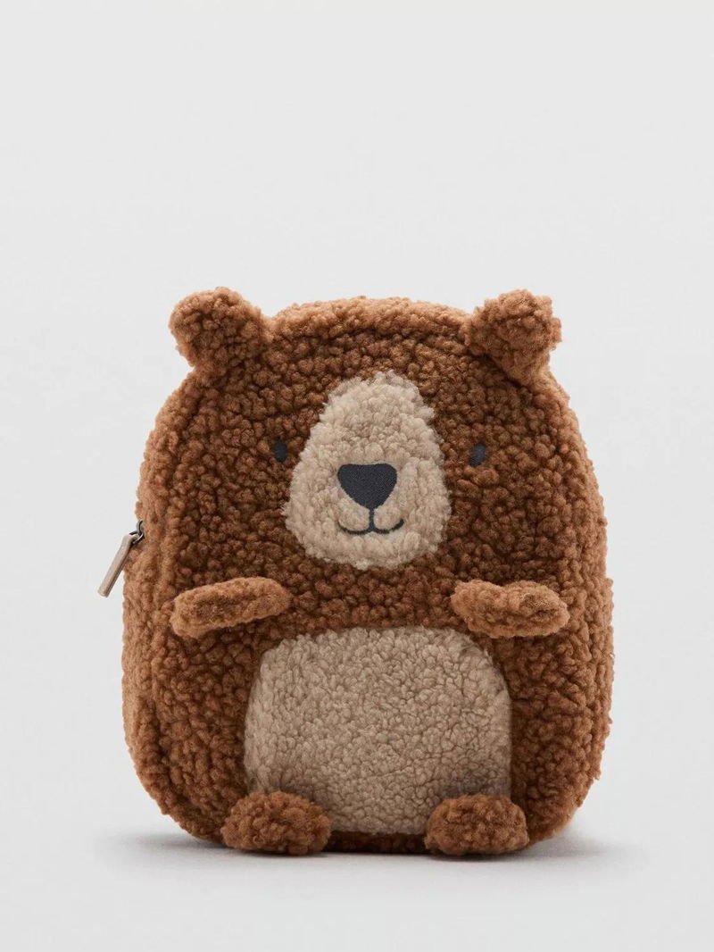Kids' Fluffy Teddy Backpack, Medium Brown