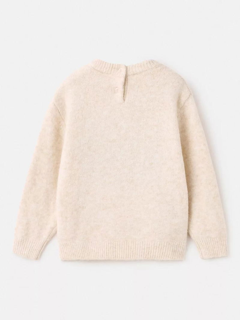 Kids' Knitted Crew Neck Squirrel Jumper, Light Beige