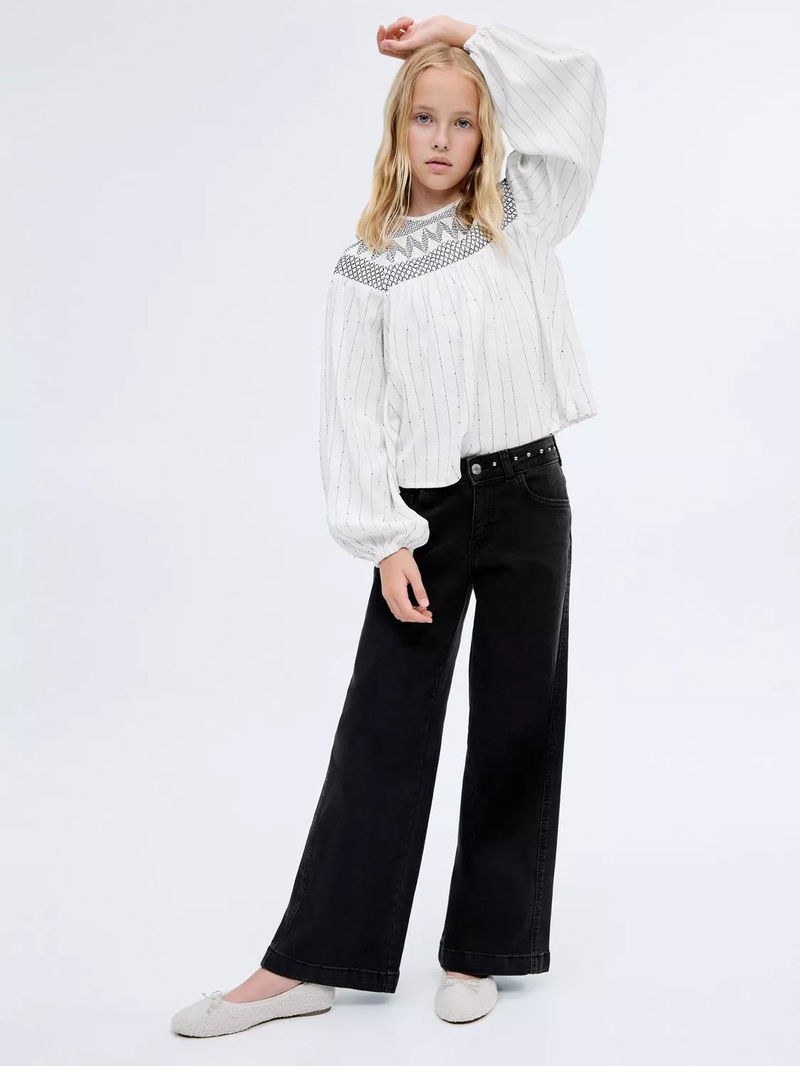 Kids' Low Rise Wide Leg Studded Jeans