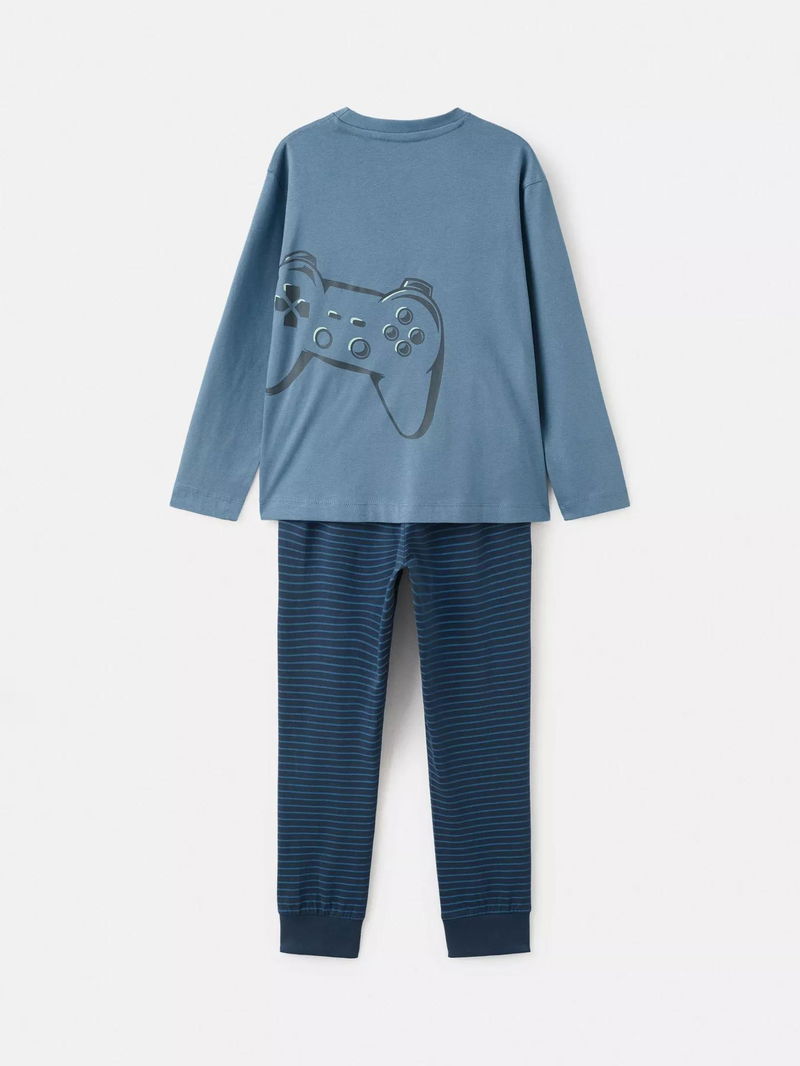 Kids' Player Cotton Long Sleeved Pyjama Set, Dark Blue
