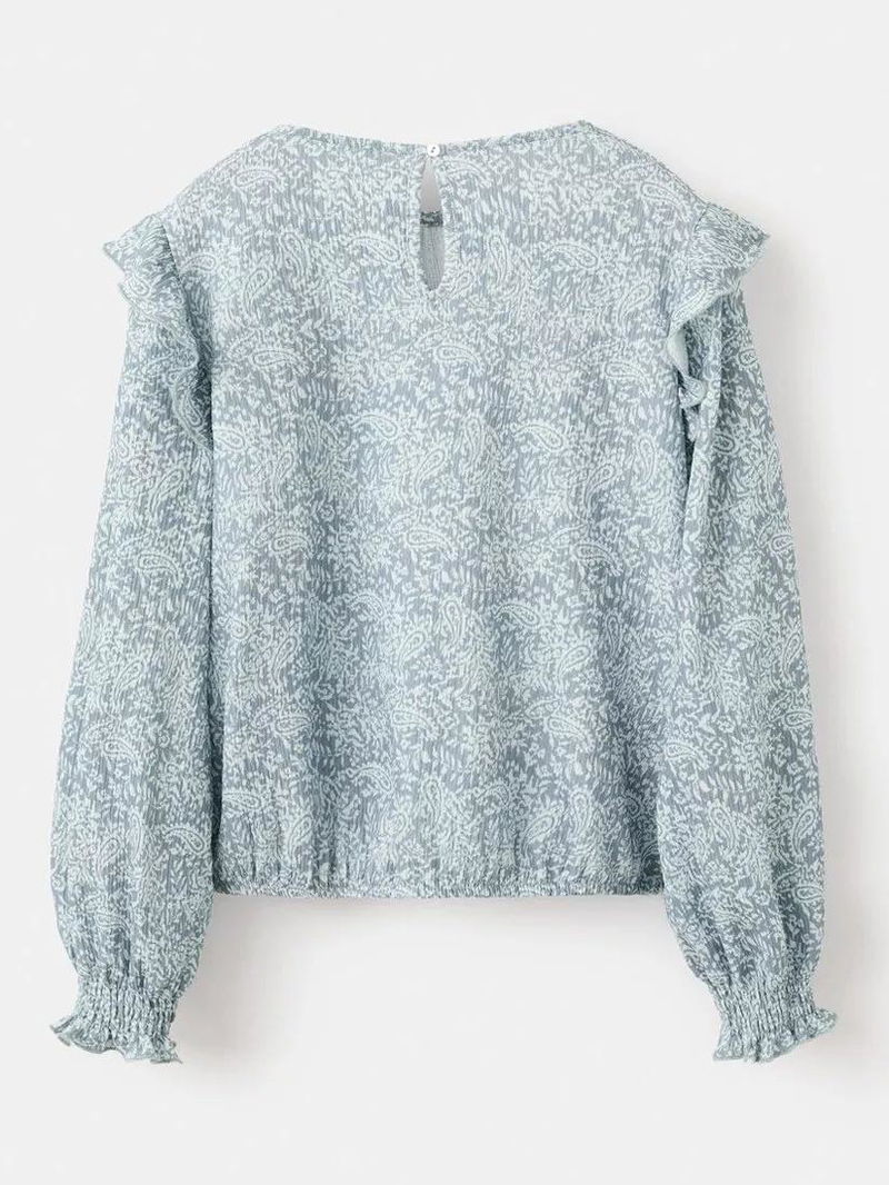 Kids' Printed Ruffle Sleeve Top, Medium Blue