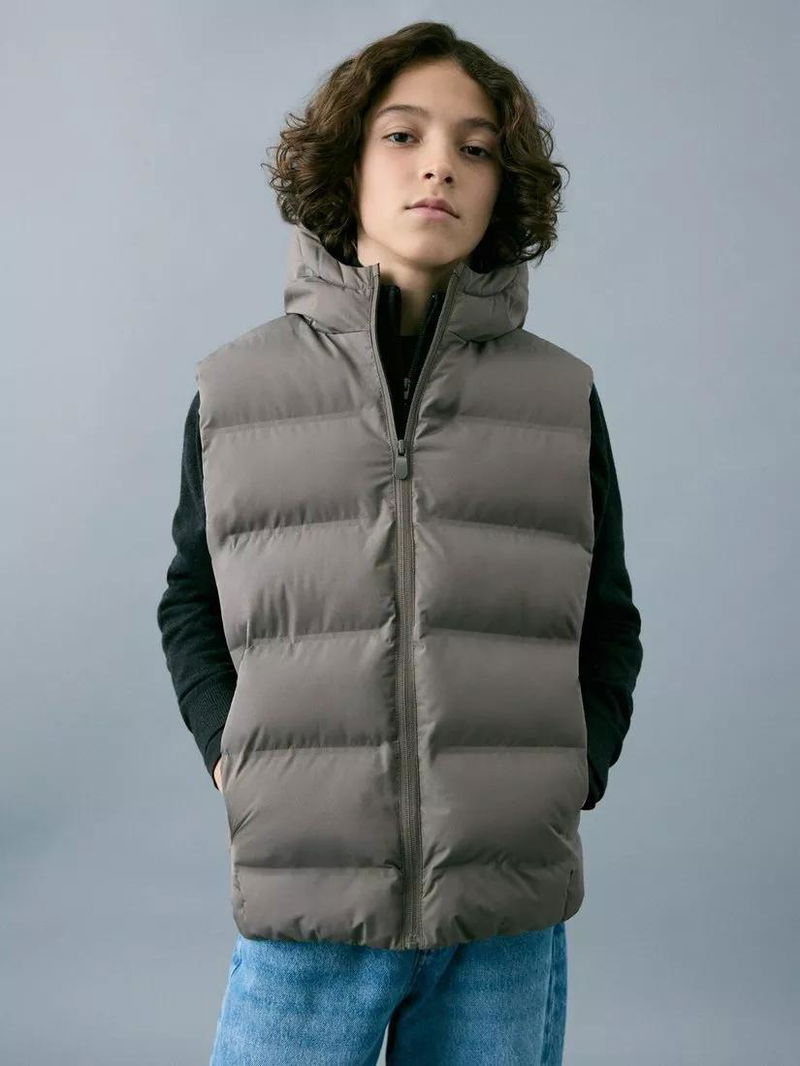 Kids' Quilted Hooded Gilet, Taupe