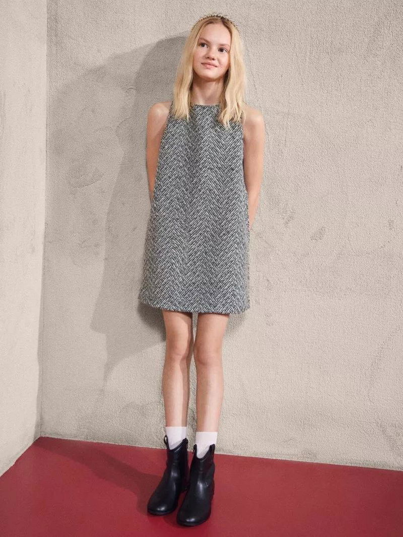 Kids' Rosa Sleeveless Herringbone Dress, Blue/Multi
