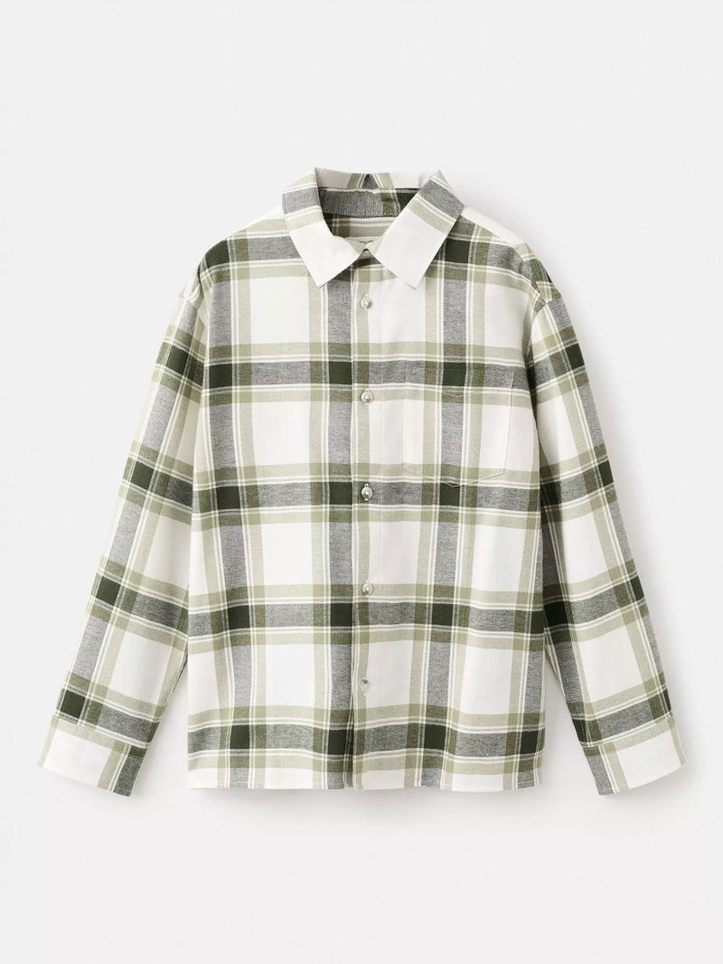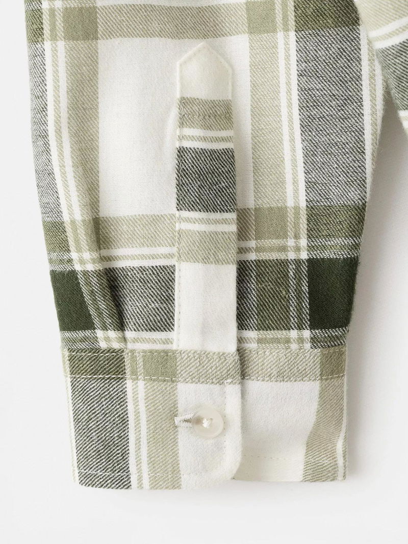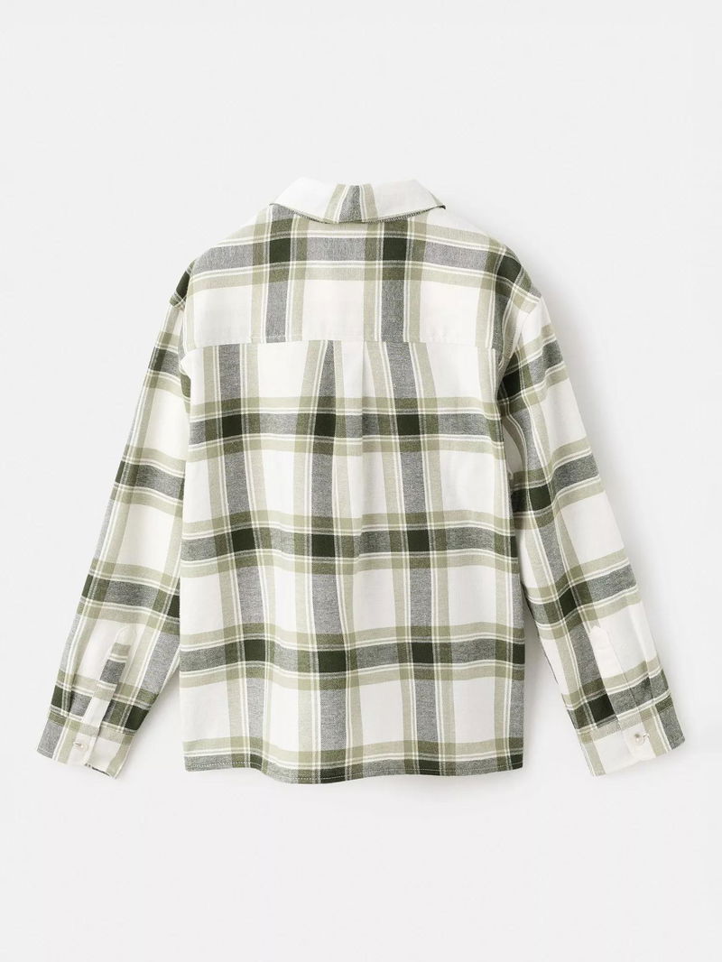 Kids' Ruben Cotton Long Sleeved Checked Shirt, Beige/Khaki