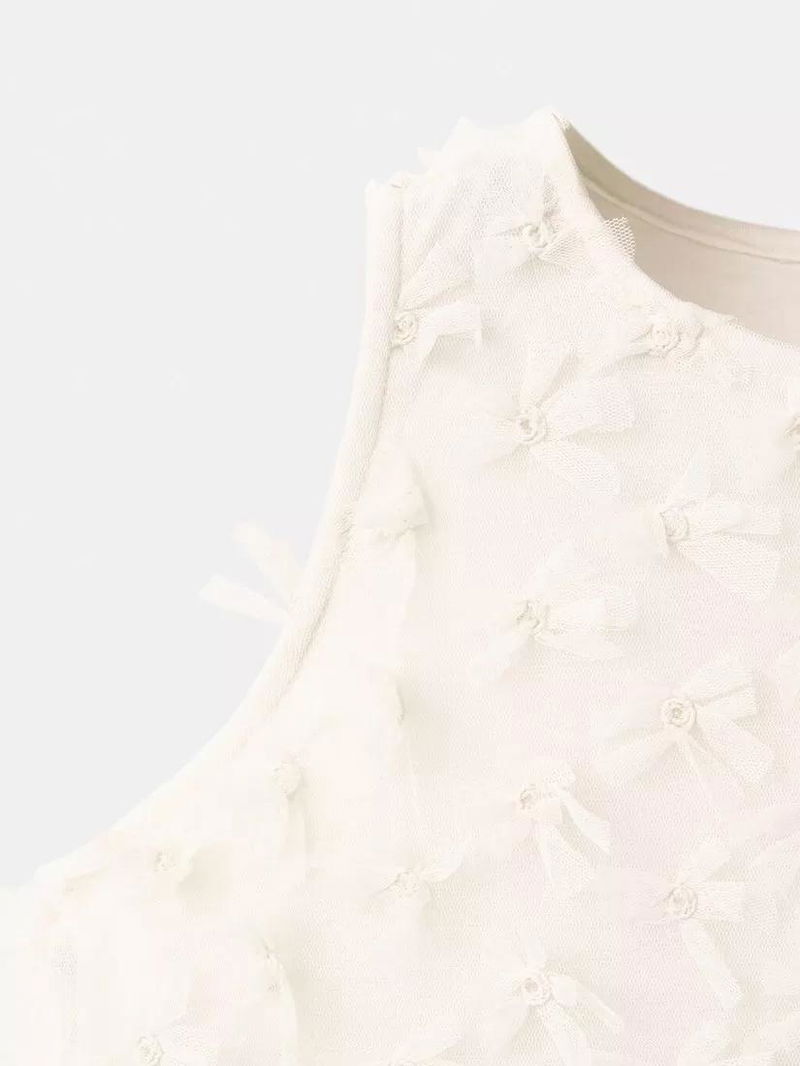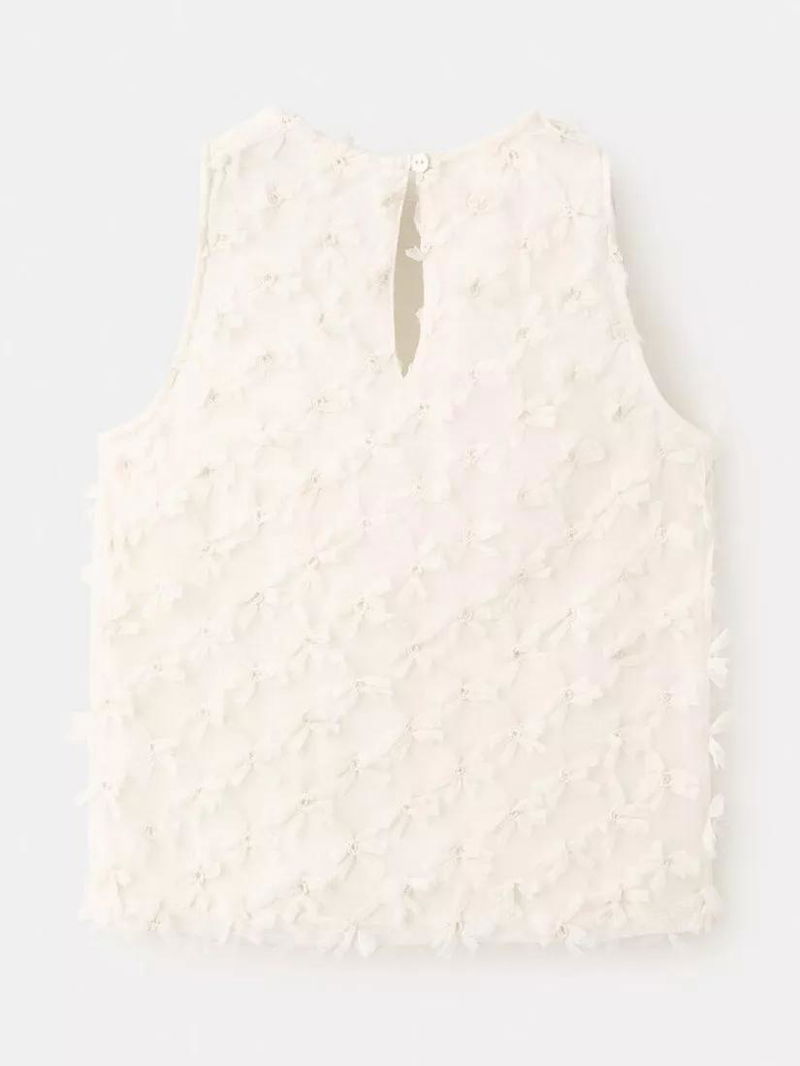 Kids' Sleeveless Floral Bow Blouse, Natural