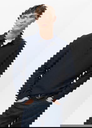Casual line, Fine knit fabric, Wool mix fabric, Polo neck, Button up, Long sleeve, Cable knit finish, Back length 28.35 in.