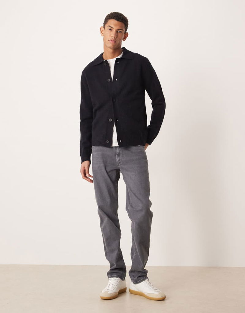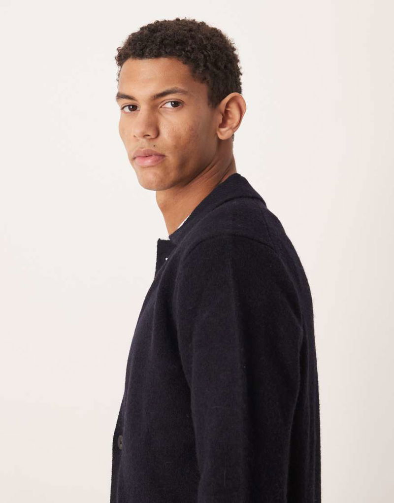 Knitted Collar Cardigan In Blue