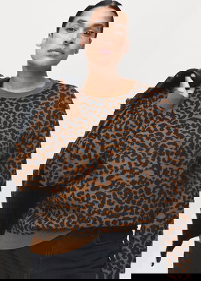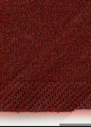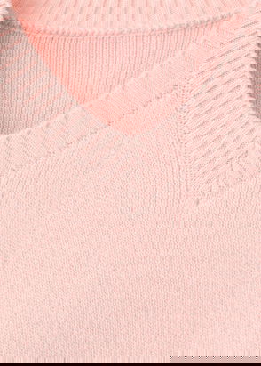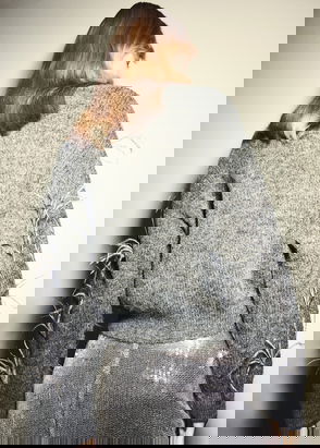 Cotton and wool mix, Thick knitted fabric, Cropped design, Straight design, Multicolour design, High collar, Long sleeve, Unclosed, Cable knit finish.