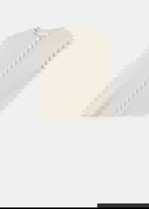 Knitted fabric, Straight design, Turtleneck, Sleeveless, Zip closure at the neck, Cable knit finish.