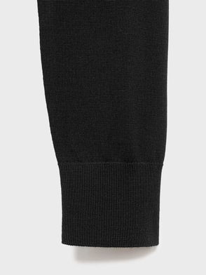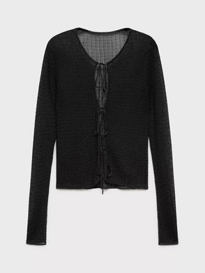 Knitted fabric. Straight design. V-neck. Long sleeve. Button fastening at the front. Jewel effect buttons.