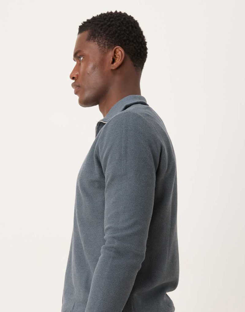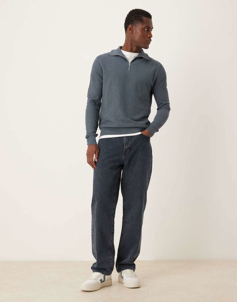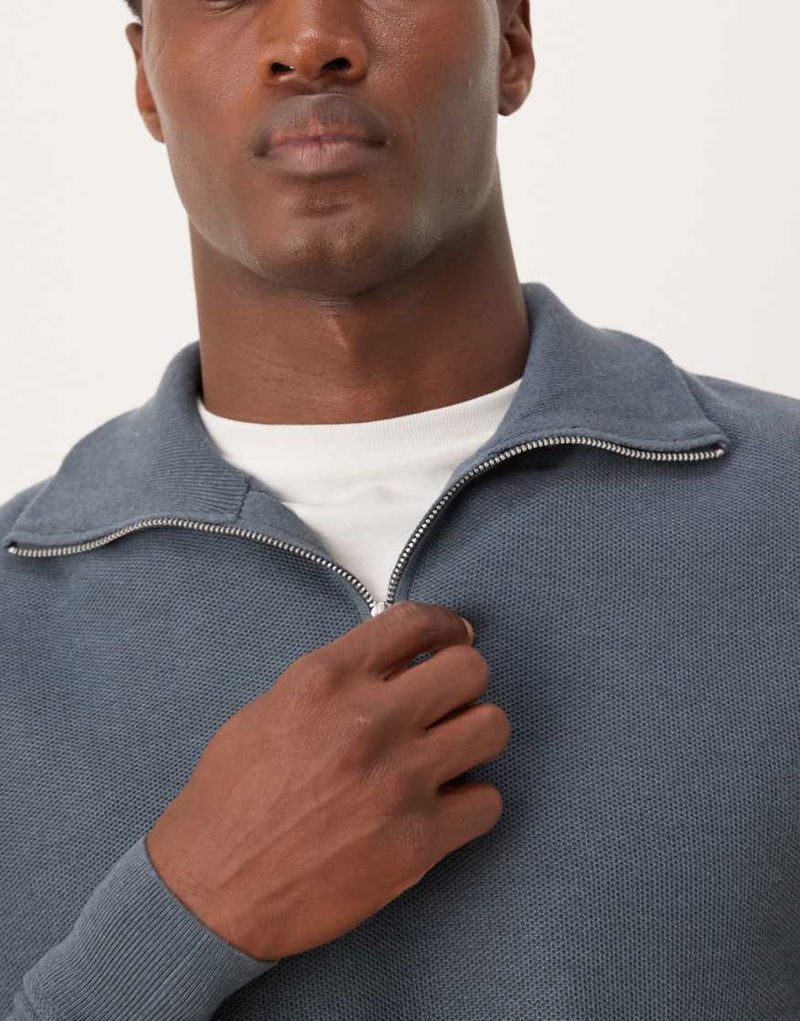 Knitted Quarter Zip Jumper In Dark Blue