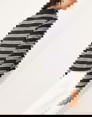 Stripe design Spread collar V-neck Sleeveless style Cropped length Regular fit.