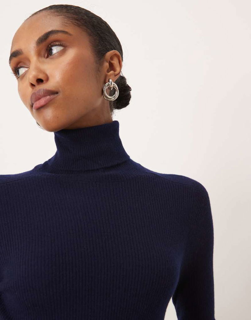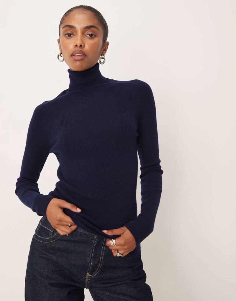 Knitted Soft Touch Roll Neck Jumper In Navy