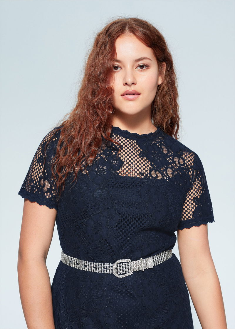 Online Exclusive, Lace fabric, Straight design, Rounded neck, Short sleeve, Fitted waist, Zip fastening on the back section.