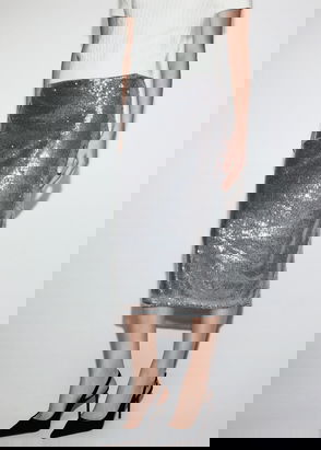 This lace skirt features an intricate pattern that adds texture. Its asymmetrical-hem design creates a dynamic visual effect. It also comes with a matching top for a total look, ideal for those seeking a balance between classic and modern styles
