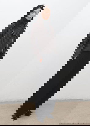 100% Leather, Short design, Rounded neck, Long sleeve, Two side pockets, Inner lining, Zip fastening.