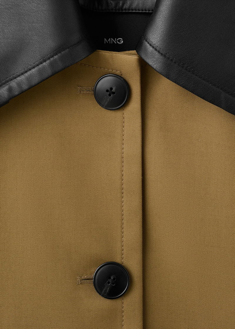 Leather Effect Collar Trench Coat