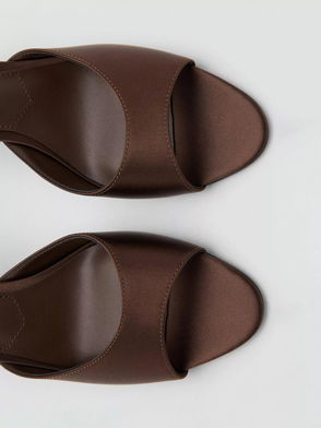 This leather sandal stands out for its sophisticated design, enhanced by a patent finish that adds a touch of luxury. Its bold silhouette combines a stiletto heel with a pronounced platform, making it the ideal accessory to complete evening outfits with a touch of glamour. 100% bovine leather. Patent leather effect. Slingback design. Open toe. Platform. Stiletto heel. No Fastening. 14 cm heel. Online Exclusive. This garment is part of our party and event collection, designed to elevate your looks for special occasions. Items from the CAPSULE collection can be exchanged or returned within 14 days from the date of shipment.