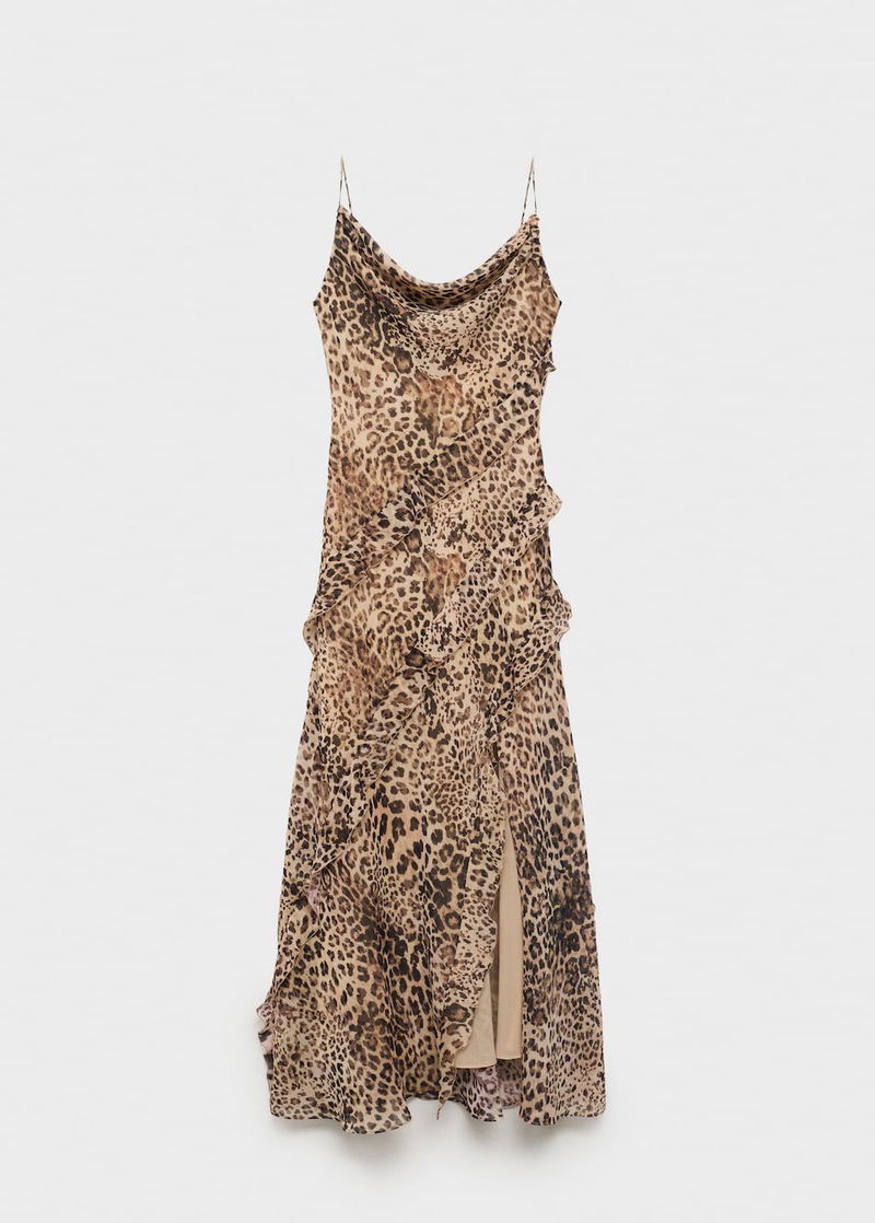 Leopard-print Ruffle Dress With Opening