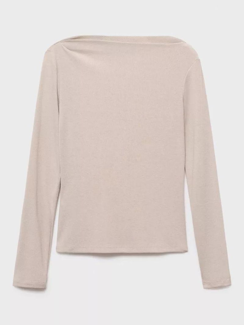 Lilobar Long Sleeve Slash Neck Top, Pastel Brown