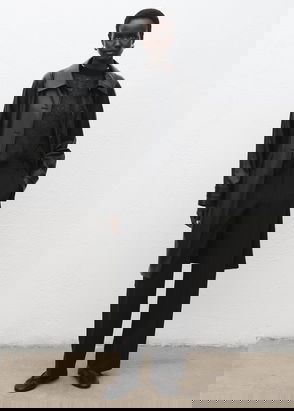A cropped trench coat from Mango, crafted from a cotton blend for breathable wear. Featuring a double-breasted front, lapel v-collar, long sleeves and two side pockets.