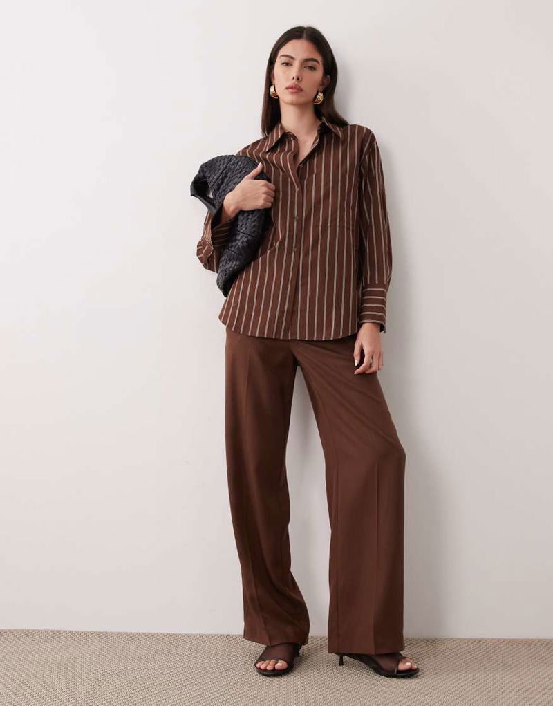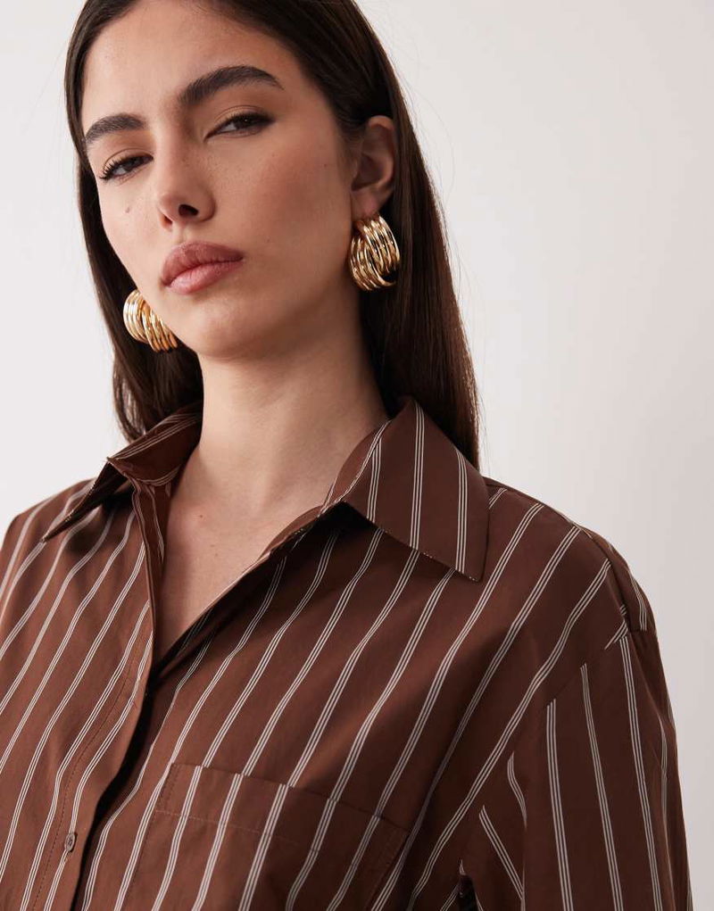 Llama Oversized Shirt Co-ord In Chocolate Stripe