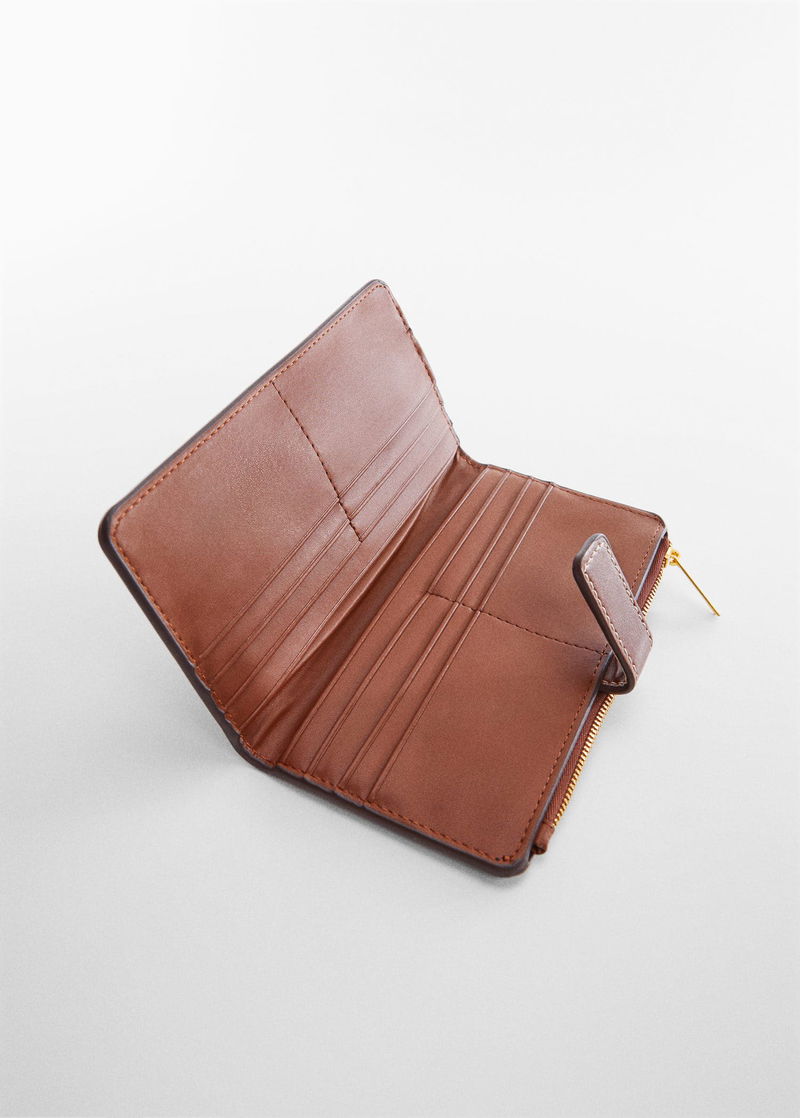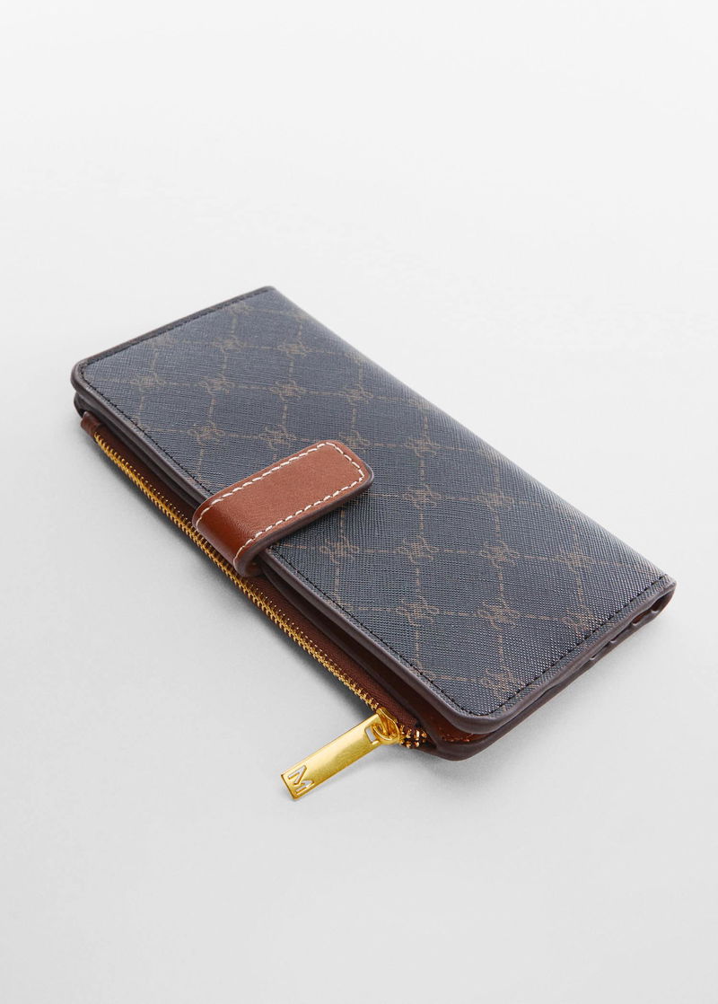 Faux leather, Large, Geometric print, Multiple card slots, Upper zip fastening, Metallic press stud fastening.