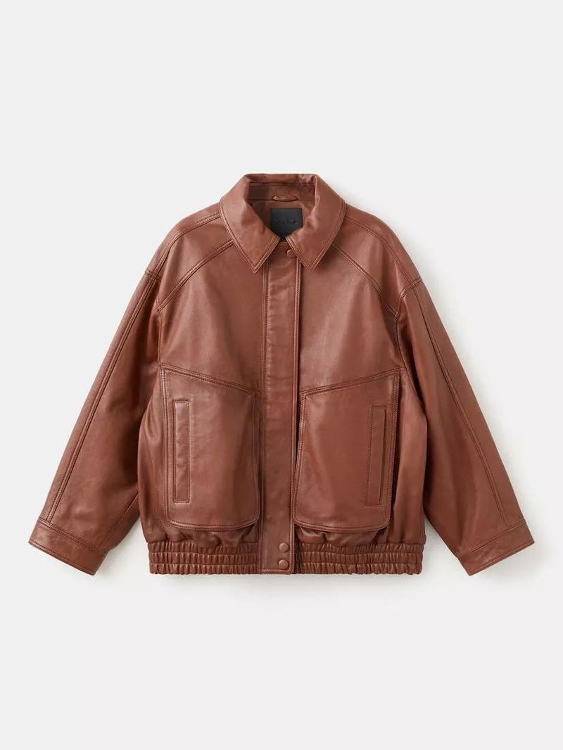 London Oversized Pure Leather Jacket, Dark Brown