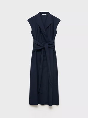 Fluid fabric. Long design. Straight collar. Straps with button closure. Elastic gathered waist. Two side pockets.