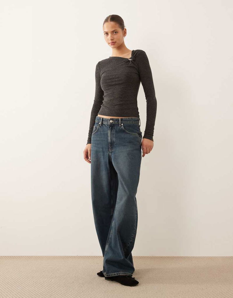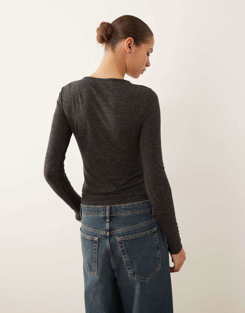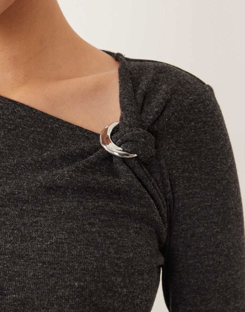 Long Sleeve Top With Hardware Detail In Charcoal