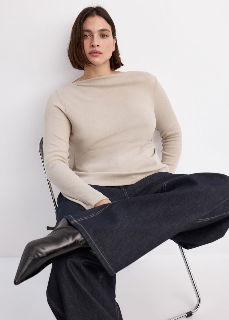 Long-sleeved Boat-neck T-shirt