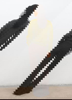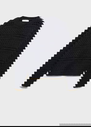 Thick knitted fabric. Open-knit fabric. Crochet design. Straight design. Standard design. Round neck. Long sleeve. No fastening.