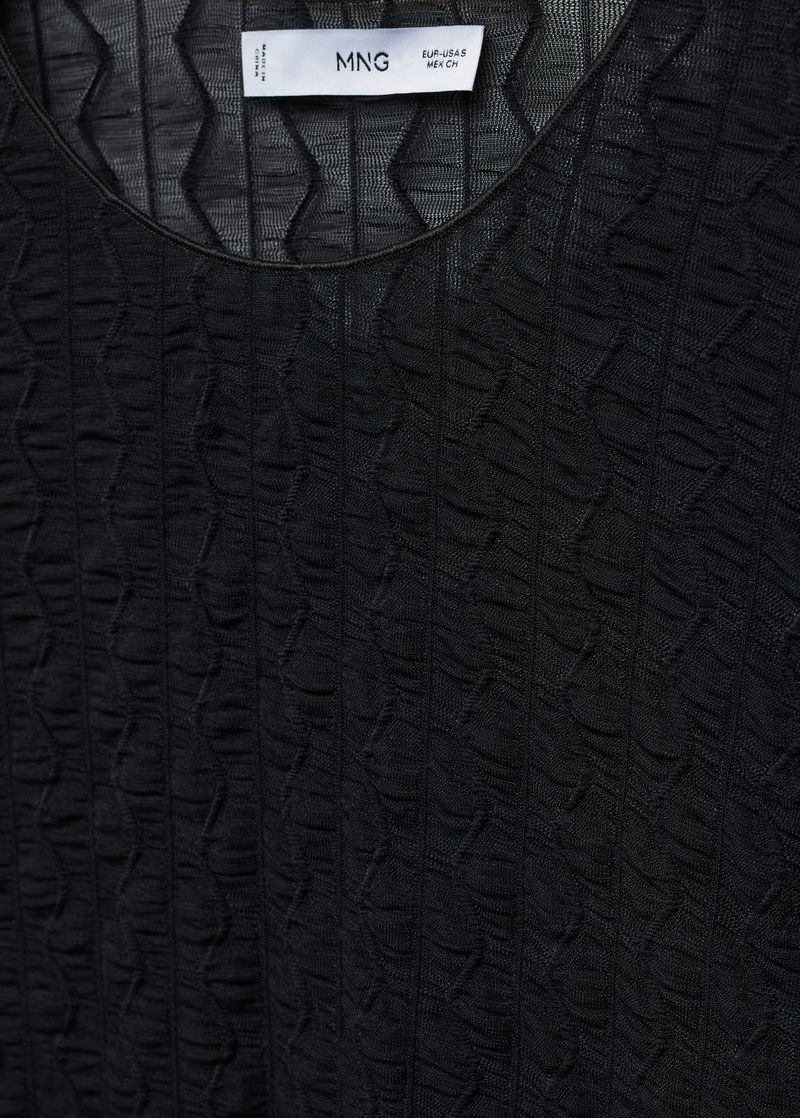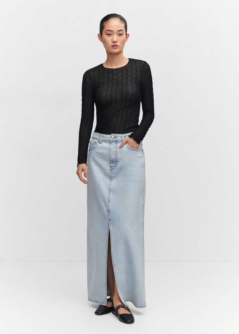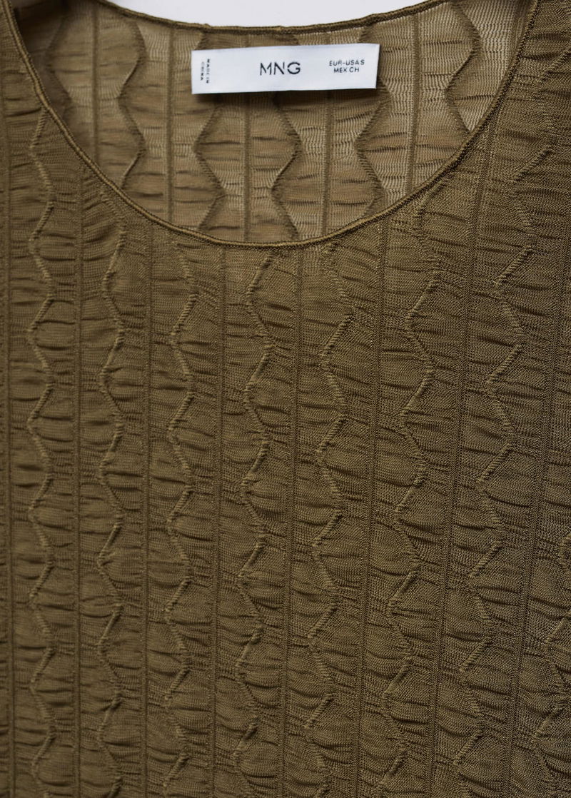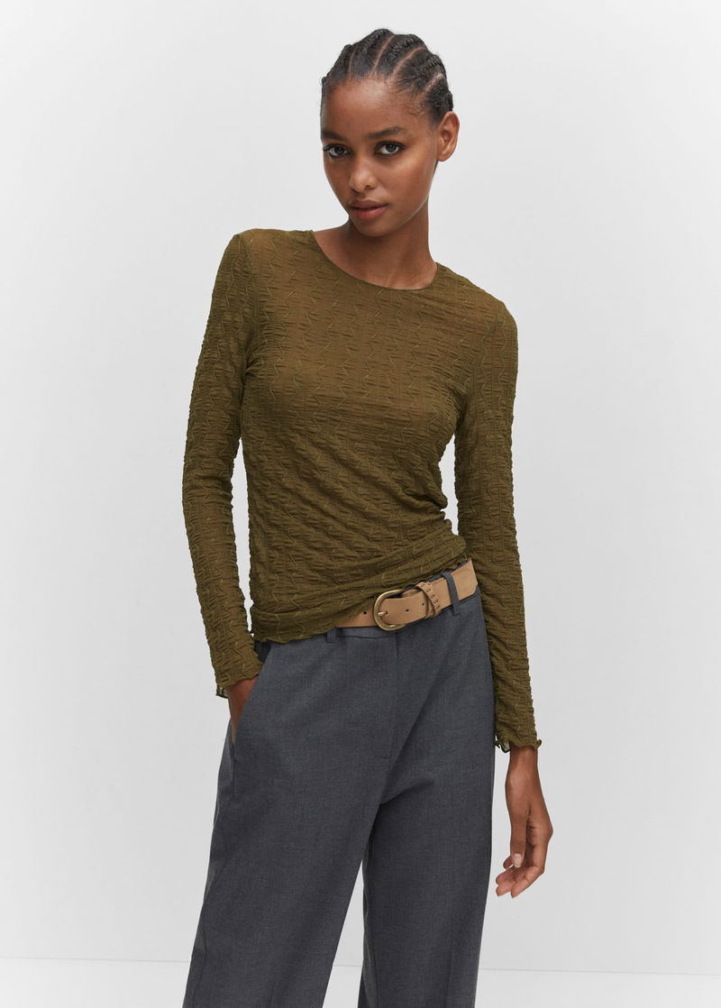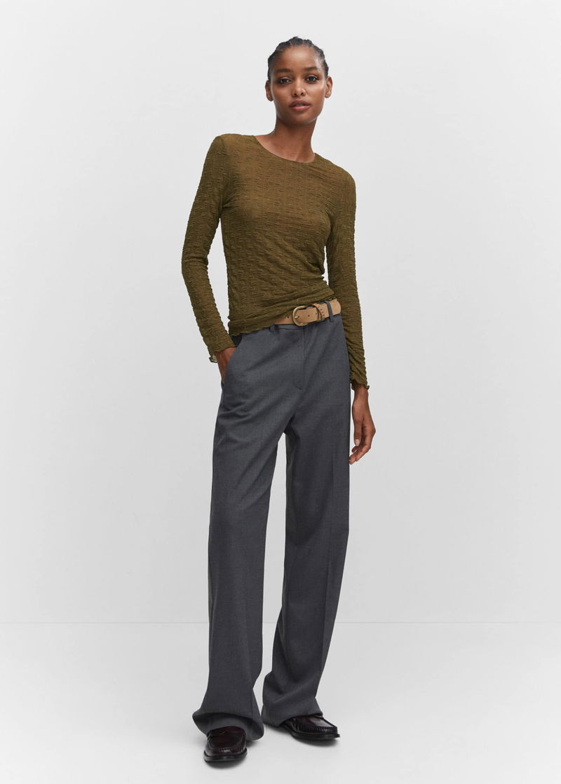 Elastic, Elastic gathered section, Tailored design, Rounded neck, Long sleeve.