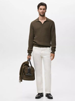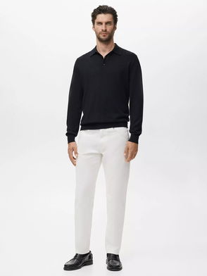 Casual line, Cotton-blend fabric, Polo neck, Long sleeve, Elastic finish, Cable knit finish, Side slits.