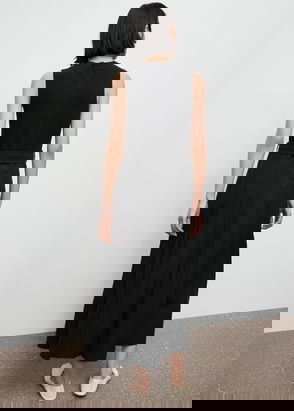 This fluid, long-length dress is a versatile addition to any wardrobe. The fitted design accentuates your shape, while the round neck and wide straps provide a timeless foundation. Dress it up or down thanks to the sleeveless style and the subtle slit detail on the back. The no-fastening design makes it incredibly easy to wear for any occasion.