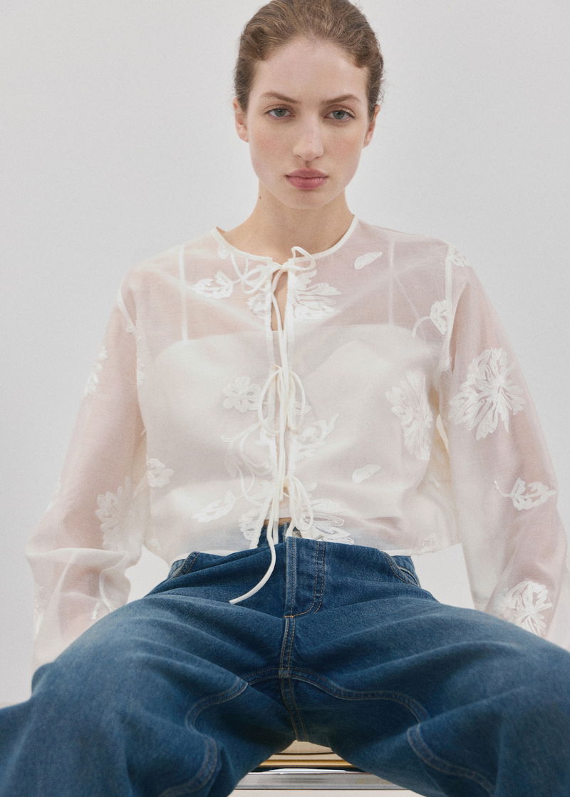 Lyocell Blouse With Floral Embroidery