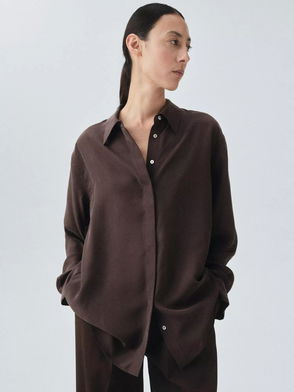 Lyocell fabric, Long design, Mao neckline, Button fastening on the front section, Side slits, Side length 25.87 in Back length 38.39 in.