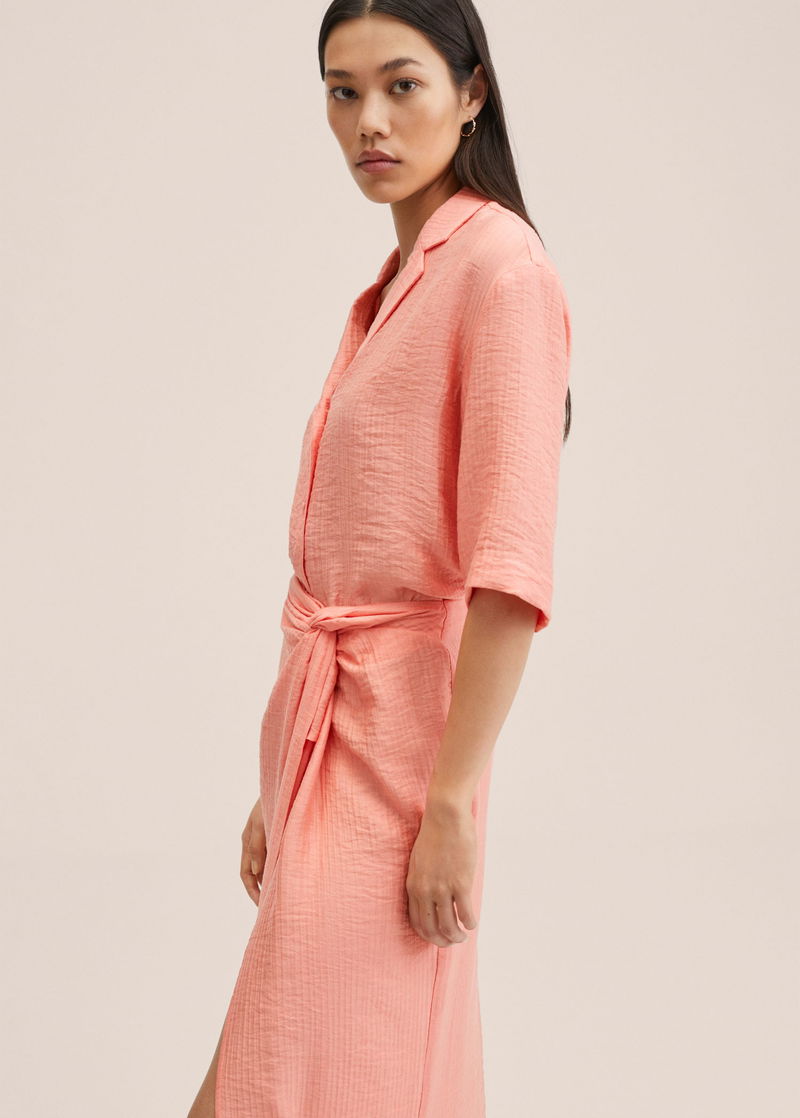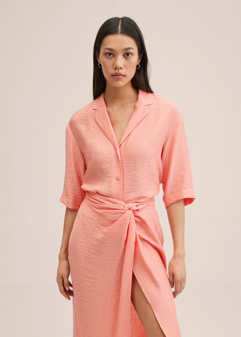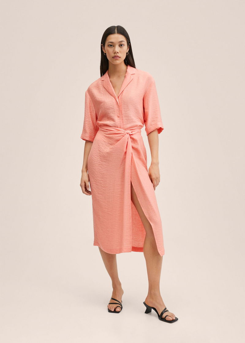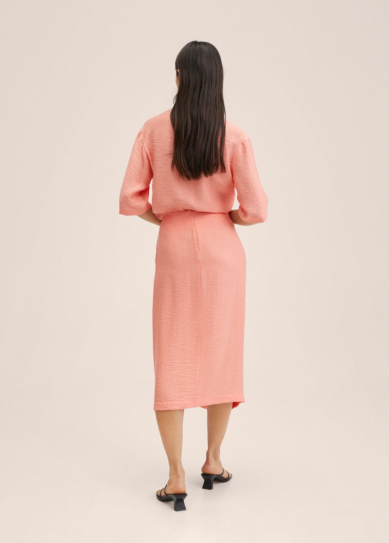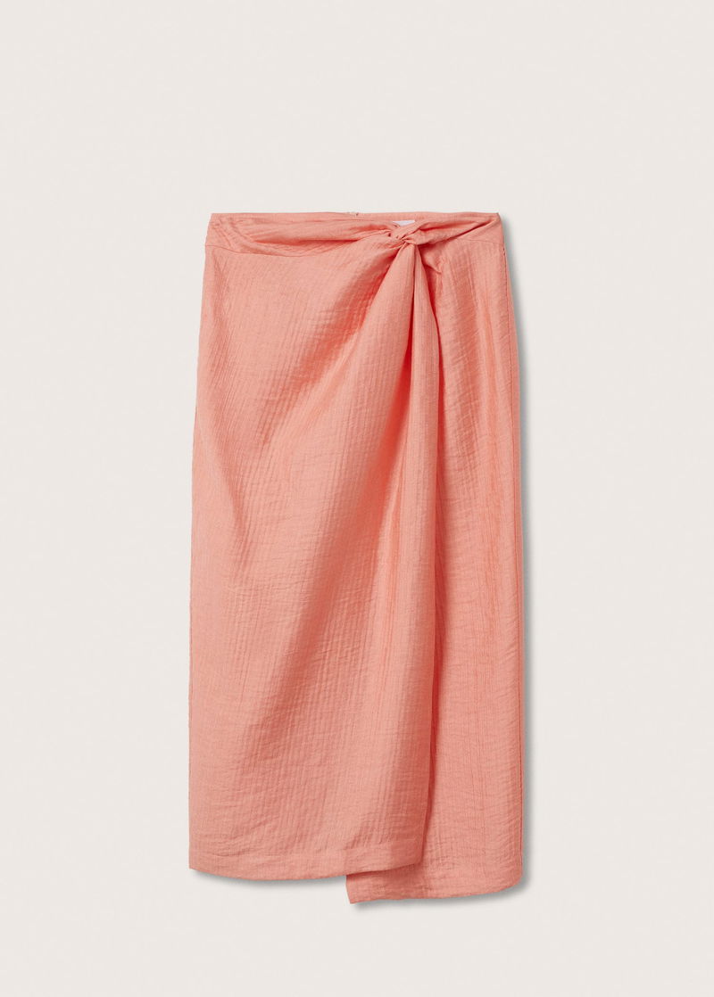 Lyocell fabric, Light fabric, Midi design, Straight design, High waist, Front slit, Knot detail, Zip fastening on the back section, Total look.