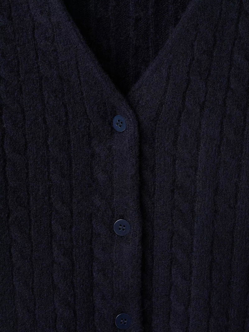 Marine V-Neck Knit Cardigan, Navy
