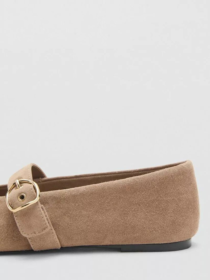 Mary Jane Flat Ballerina Pumps, Sand