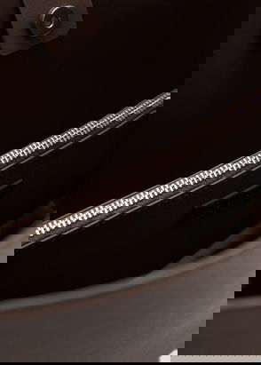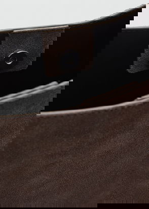 Medium. Shopper style. Two shoulder straps. Magnetic button closure. Leather inner lining.