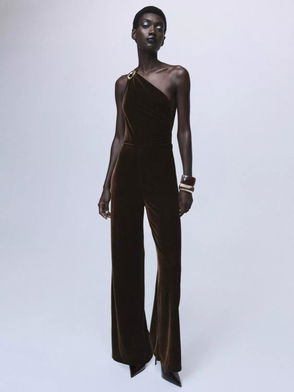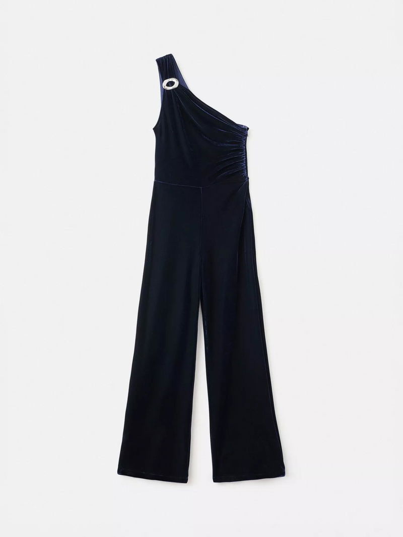 Melo Velvet Asymmetric Neckline Jumpsuit
