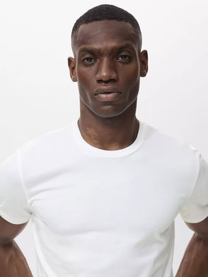 Casual line, Sustainable cotton fabric, Regular fit, Rounded neck, Short sleeve, Mercerised finish.