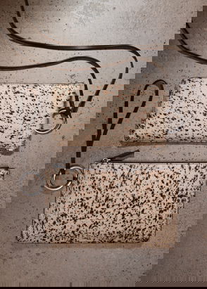 Rigid design, Metallic finish, Long strap, Clip fastening.