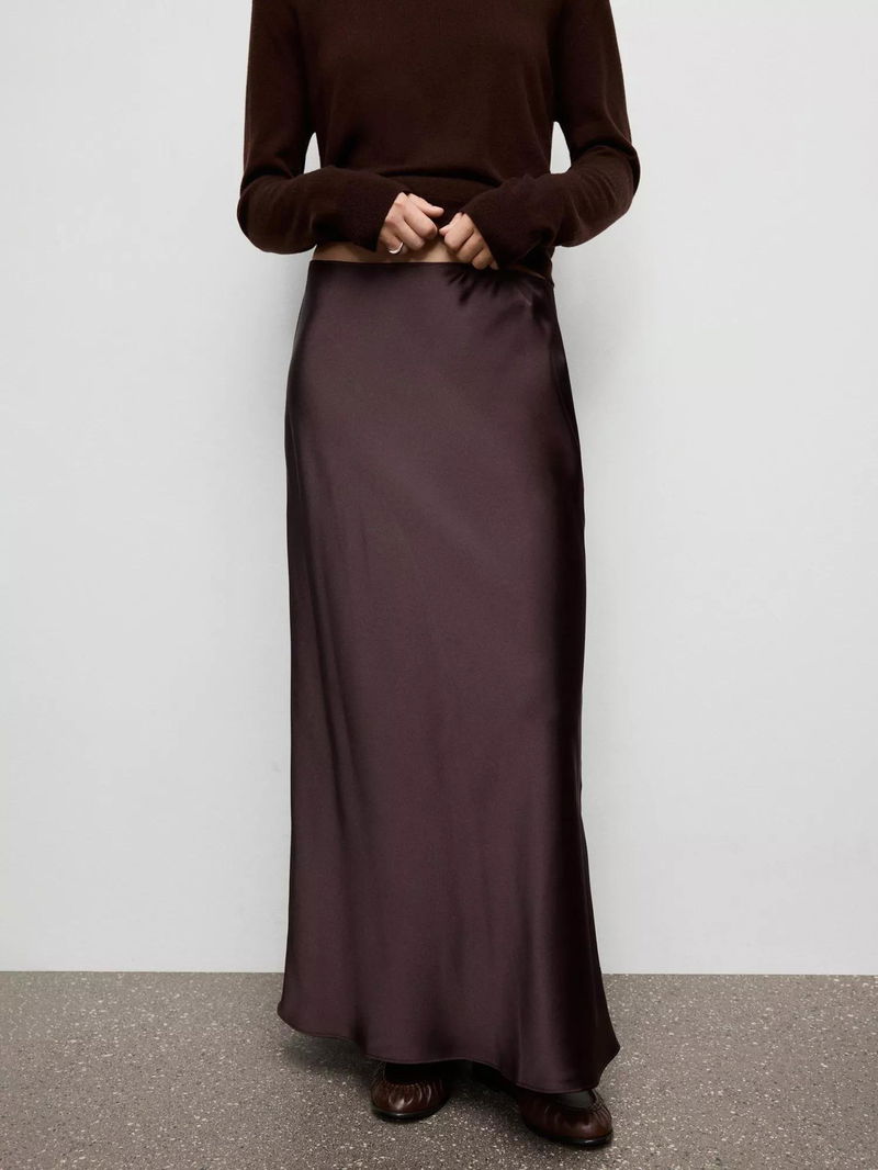 Mia Satin Maxi Skirt, Dark Purple