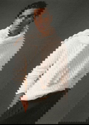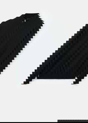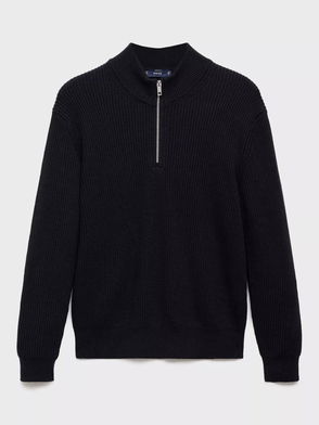 Cotton blend fabric. Straight silhouette. Fine-knit fabric with micro-structure. Round neck. Ribbed collar, sleeves and hem. Straight hem. The model is 190 cm tall and wears a size M.