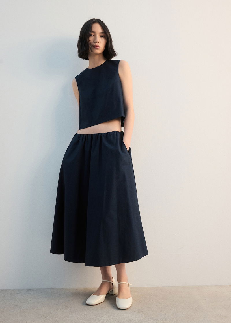 Midi Cotton Skirt With Pleats