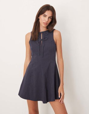 Mili Bow Detail Dress, Medium Blue
