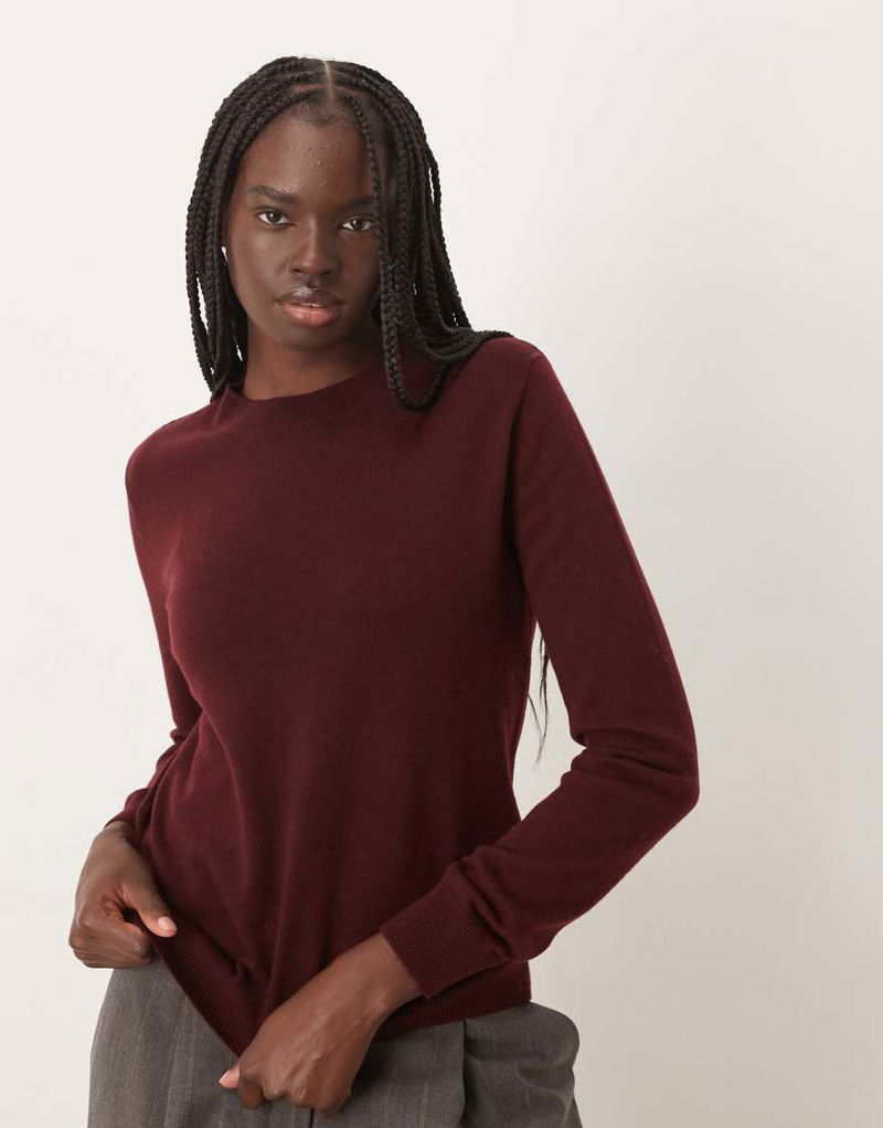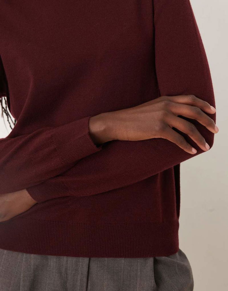 Mock Neck Knitted Top In Burgundy
